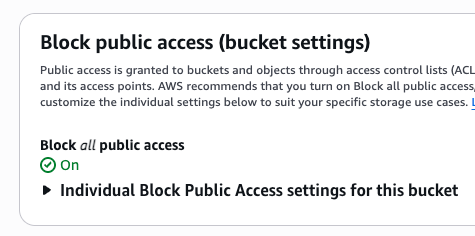 1. 需要创建S3 Bucket , 记得需要block完所有的public access