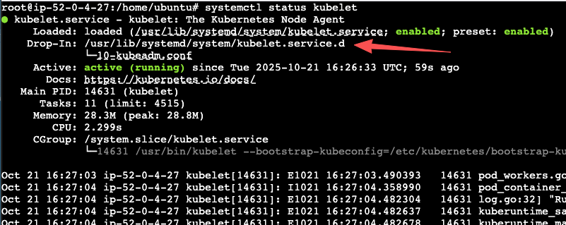 1. 进入WorkerNode 然后找出Kubelet的Drop-In 目录