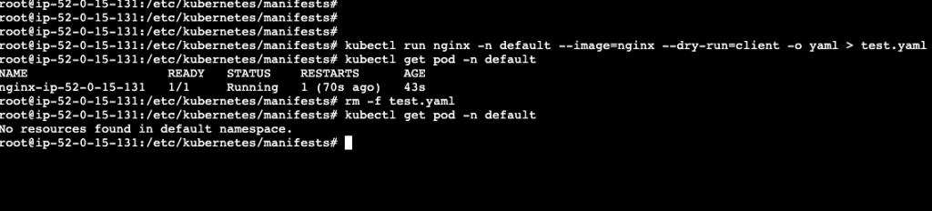 kubectl run nginx -n default --image=nginx --dry-run=client -o yaml > test.yaml