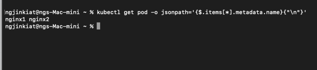 kubectl get pod -o jsonpath='{$.items[*].metadata.name}{"\n"}'