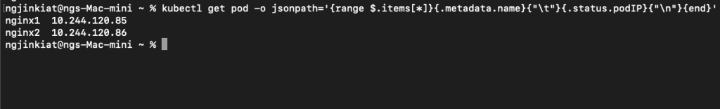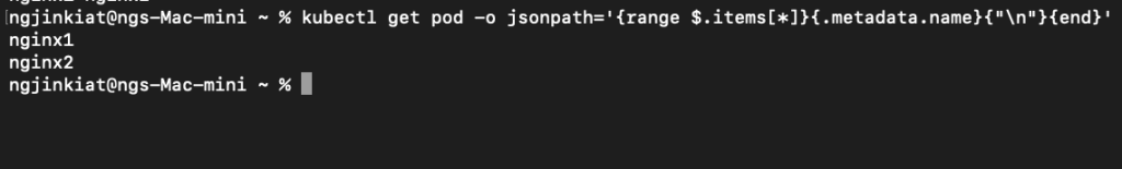 5. 使用 jsonpath range来loop 每一个pod名,以达到每个pod之后就breakline