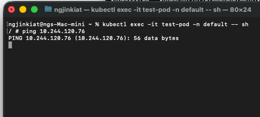 kubectl run test-pod -n default --image=alpine/curl -- sleep 36000