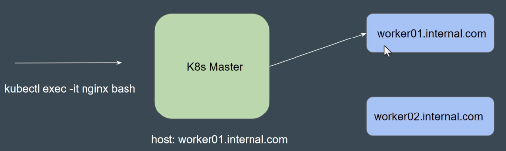 根据以上的图片,我们在使用apiserver 进入到pod内的时候,apiserver 会使用hostname解析WorkerNode在网络的地址,然后和kubelet进行连接。但是如果本机的/etc/hosts删除了hostname的解析ip的话,就无法使用hostname连接了。