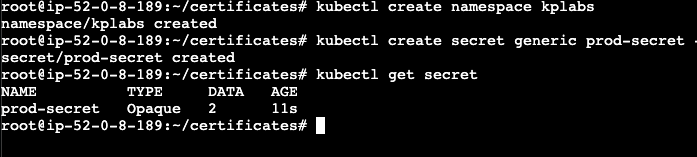 kubectl create secret generic prod-secret --from-literal=username=admin --from-literal=password=password123