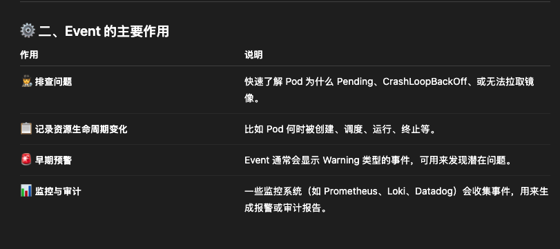 Kubernetes Events(事件) 是集群中非常重要的一部分,用来帮助你了解系统中发生了什么事情,特别是在调试和排错时非常有用。下面我来系统地讲解一下它的作用、原理和使用方法👇