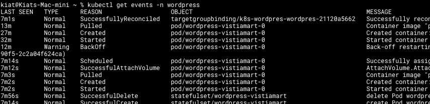 kubectl get events -n yourNameSpace